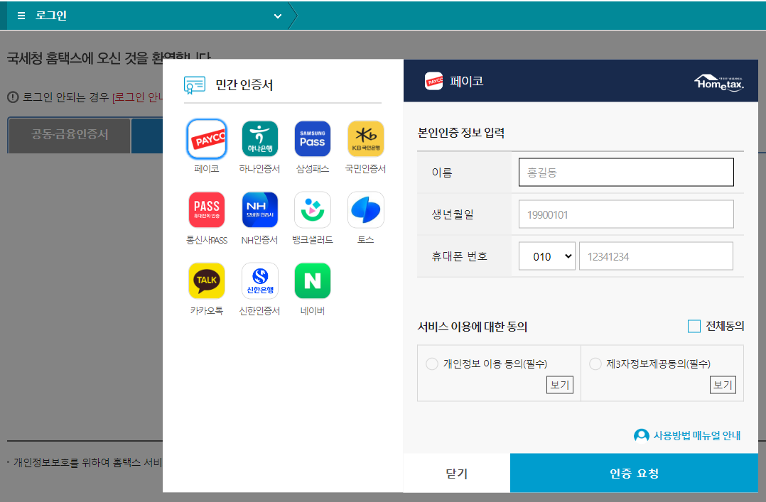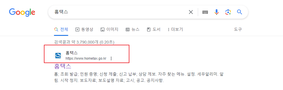 구글에서 홈택스를 검색하시거나 홈택스 바로가기를 클릭하세요.