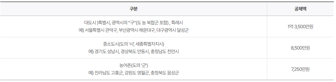 지역별로 기본 재산액은 상이하며 아래 표 참고하시기 바랍니다.